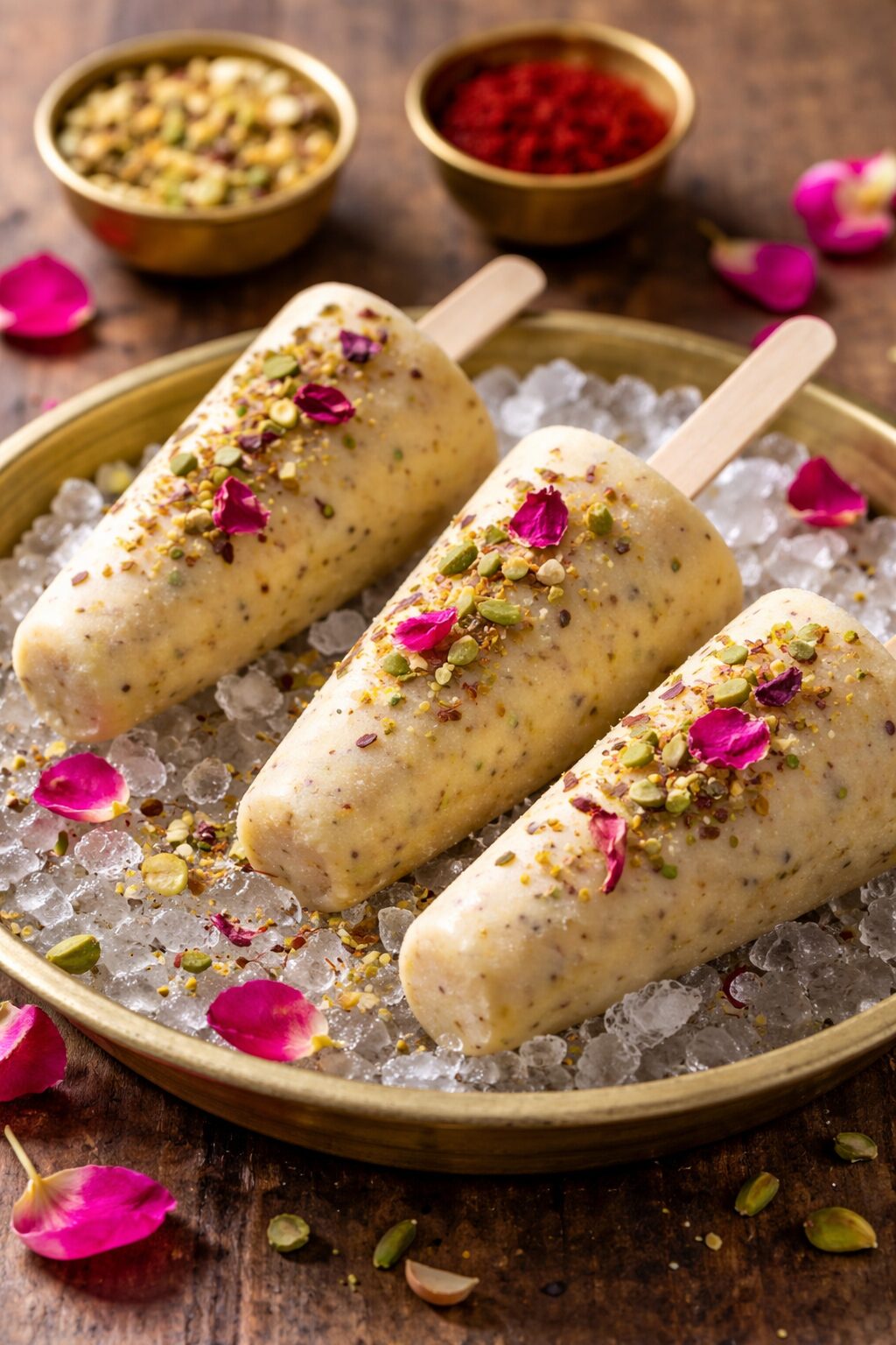 - Pour into kulfi moulds and freeze for 6–8 hours or overnight until fully set.