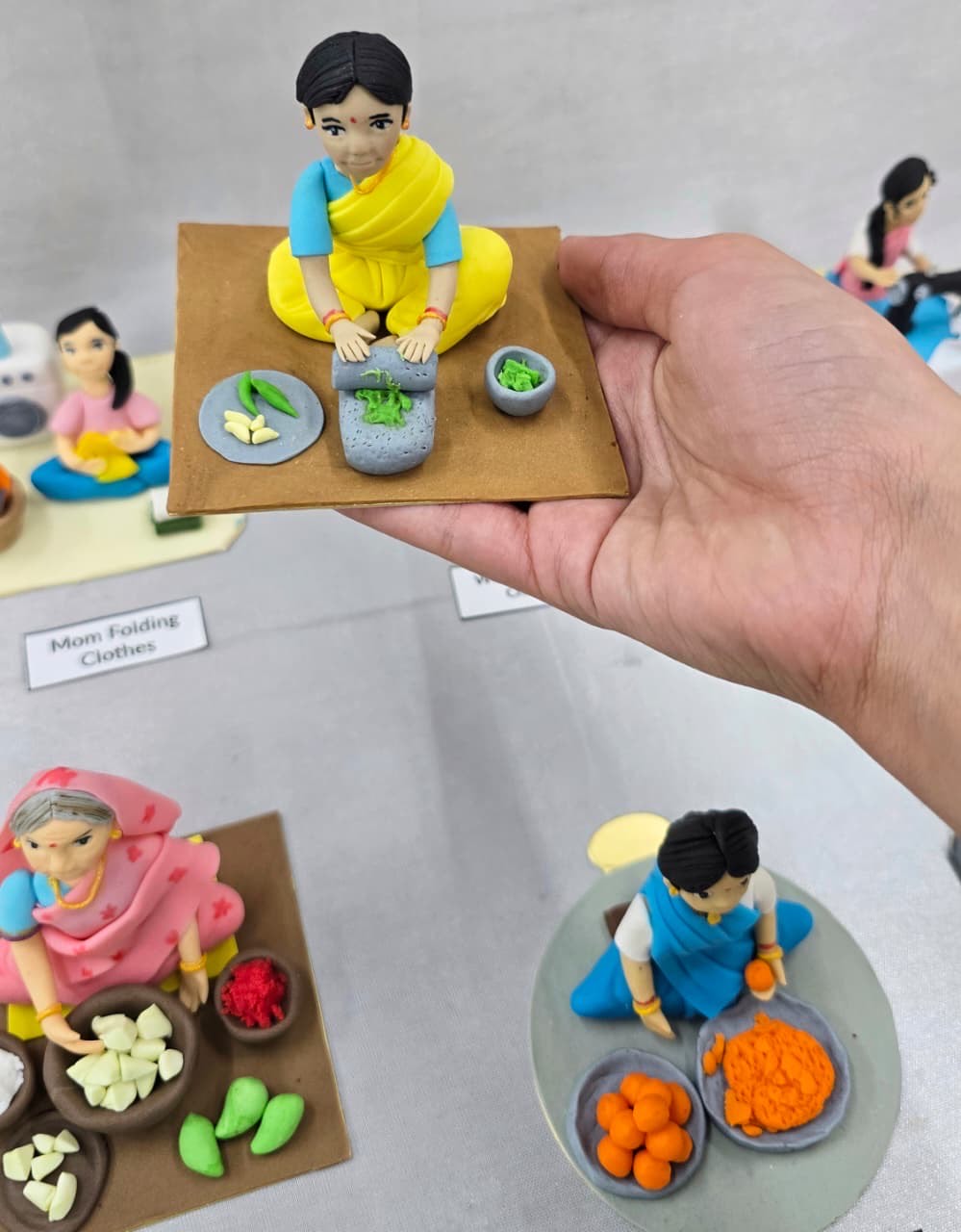 This entire display consists of 204 miniature sculptures depicting variety of Indian cultures including different professions, activities, emotions and traditions. Every sculpture is hand-crafted offering tribute and celebrating every aspect of life. From a born baby to it’s laughter and playfulness; a teenager studing, playing and pursuing hobbies; hard-working men and women in every field and profession to household chores, dancers and musicians; blending different religions and traditions.